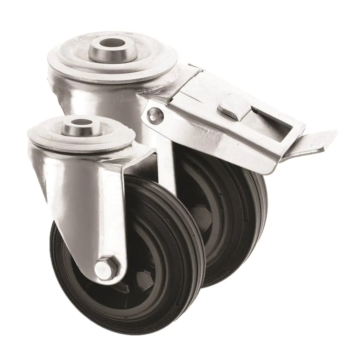 A: Yes. There are tube adaptors suitable for use with stainless steel castors, including both round and square tubing options. These are often used in environments where hygiene or corrosion resistance is important, such as food production areas, laboratories, or medical equipment.