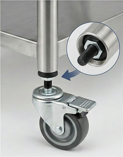 This method is commonly used for trolleys, carts, workbenches, laboratory equipment, furniture and display stands built with tubular frames.
